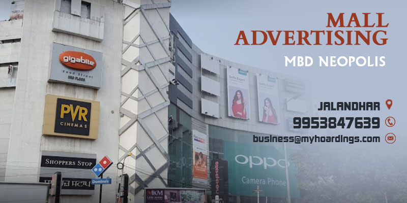 MyHoardings delivers impactful Mall Media in Jalandhar campaigns in premium shopping destinations like MBD Neopolis Mall and Viva Collage Mall. From entry signage and food court standees to digital displays and lift branding, we help brands create lasting impressions. Whether it’s a festive promotion or product launch, we ensure your campaign gets noticed.