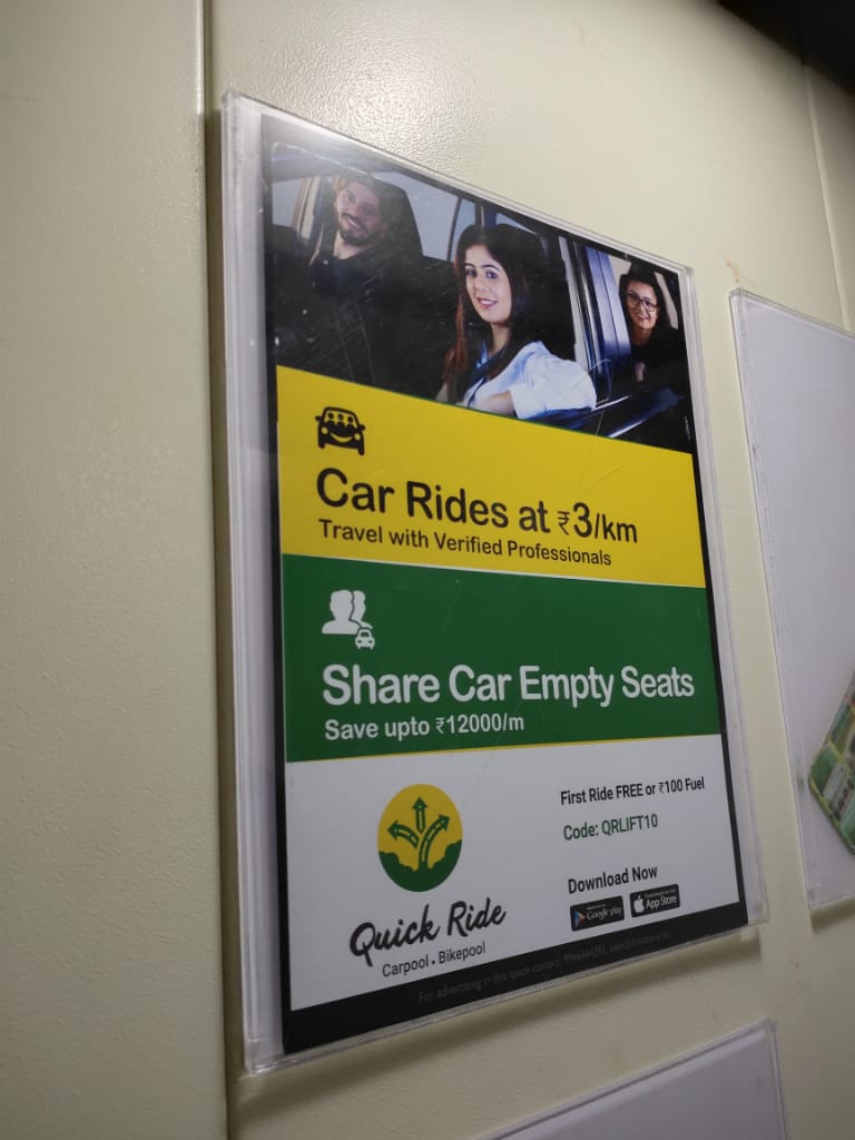 Clients from almost all categories include lift advertising in their ad campaigns across India. Recent clients for lift branding in Bengaluru were Quick Ride, Swiggy Go, Joyalukkas, Big Basket and many more.