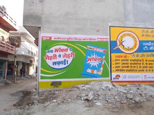 Wall wraps are usually large size flex or vinyl stickers pasted on road walls, offices buildings, retail areas in India. Wall wrap is an extremely economical and cost effective mode of outdoor advertisement and branding in India, especially in rural areas.