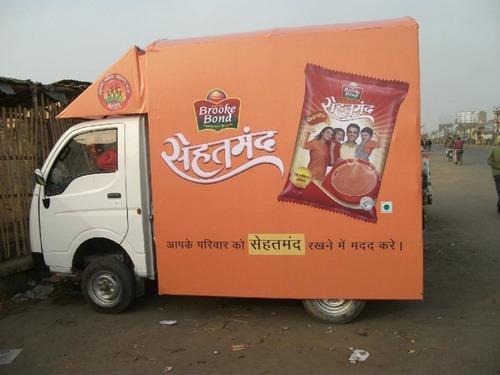 Products can be promoted with static ads like hoarding, wall painting or interactive mode of branding involving promoters using Kiosks or roadshow advertisement.