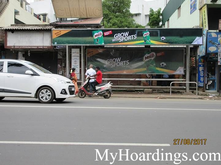 Advertising on BQS in Alwarthirunagar Bus Stop in Chennai, Bus Shelter