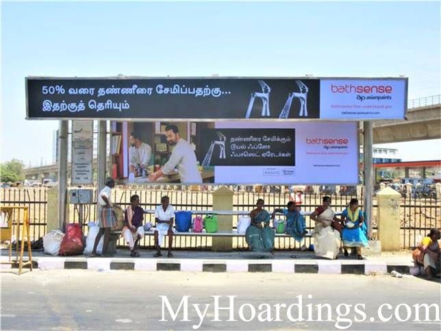 Advertising on BQS in Koyambedu Market Bus stop in Chennai, Bus Shelter