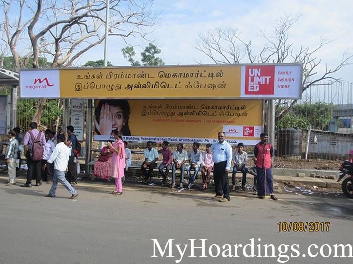 Total cost involved in Bus Shelter advertising comprises of Rental + Printing + Mounting + Taxes (Monitoring Extra). The prices mentioned above are only rentals for the space. BQS advertising rentals in Chennai and Tamil Nadu and are subject to changes depending on various factors. We encourage you to contact MyHoardings at +91 995384-7639 or drop us an email at business [at] myhoardings.com to confirm final rates.