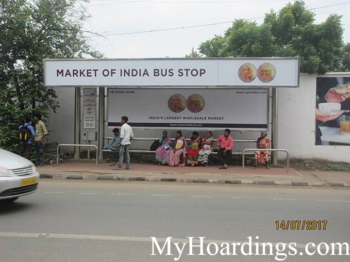 Advertising on Bus Queue Shelter Binny Mills bus Stop in Chennai, Bus Shelter