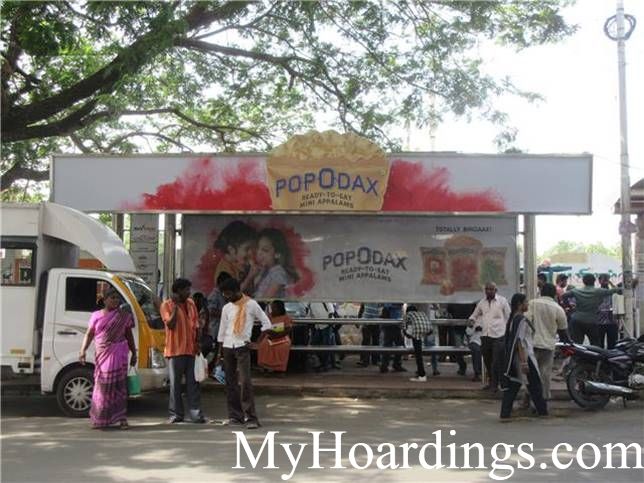 Advertising on Bus Queue Shelter Perambur Bus Depo towards Perambur Railway in Chennai, Bus Shelter