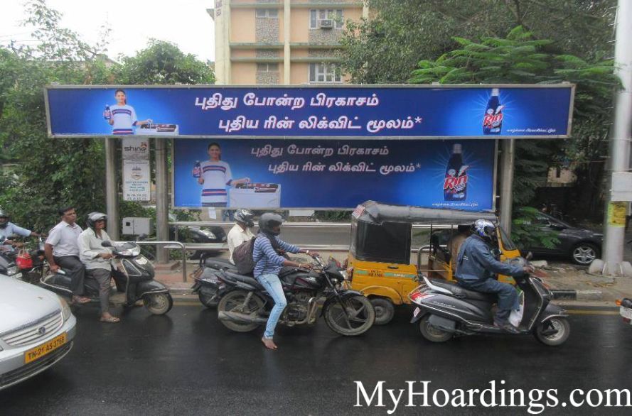 Advertising on Bus Shelter in Adyar Gandhi Nagar Bus Stop 1 in Chennai, Bus Shelter