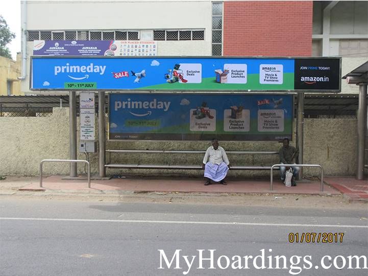 Advertising on Bus Shelter in Dr Ambedkar Road, Pudur School Opp Bus Stop in Chennai, Bus Shelter