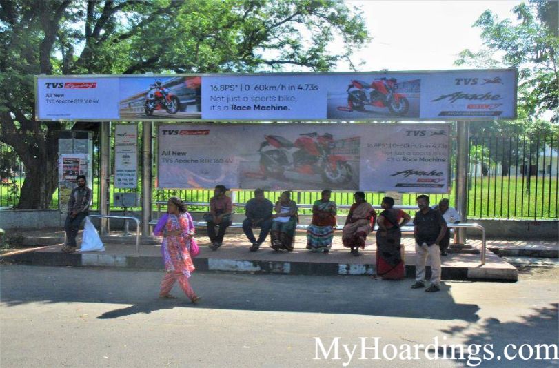 Advertising on Bus Shelter in Gandhimandapam Bus Stop towards guindy in Chennai, Bus Shelter
