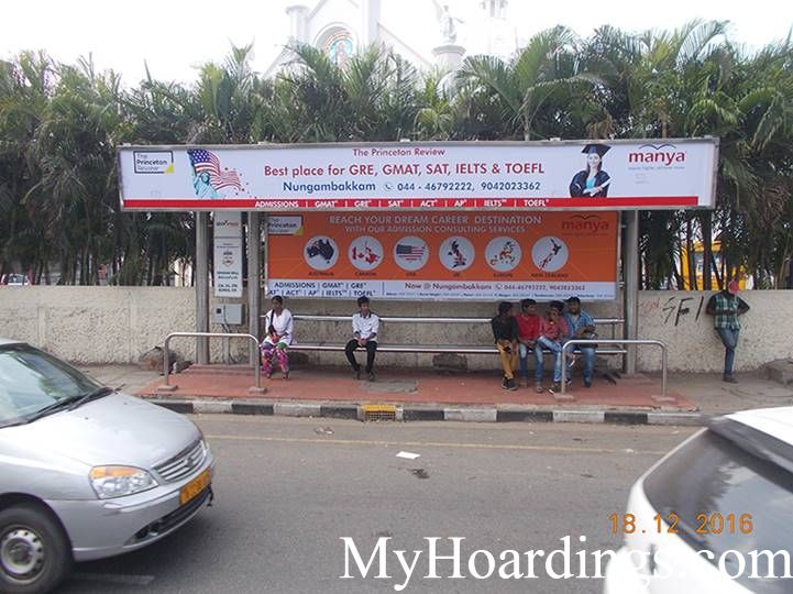 Advertising on Bus Shelter in IOC Church bus Stop in Chennai, Bus Shelter