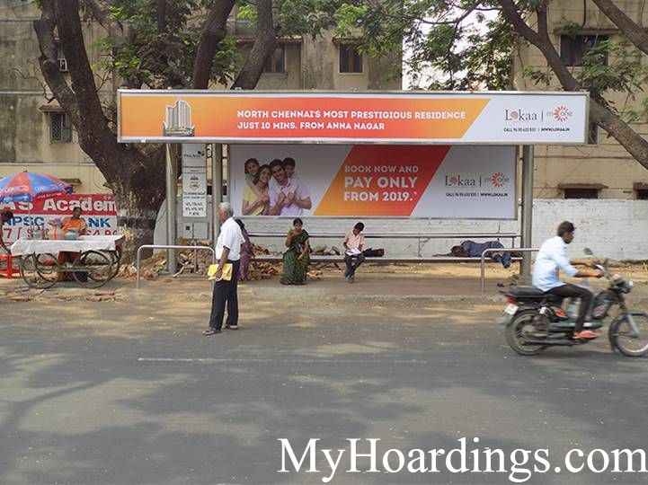 Advertising on Bus Shelter in Krishna Nagar Bus Stop in Chennai, Bus Shelter