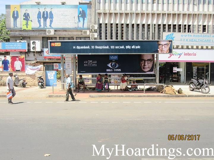 Advertising on Bus Shelter in Luz Cornor Bus Stop in Chennai, Bus Shelter