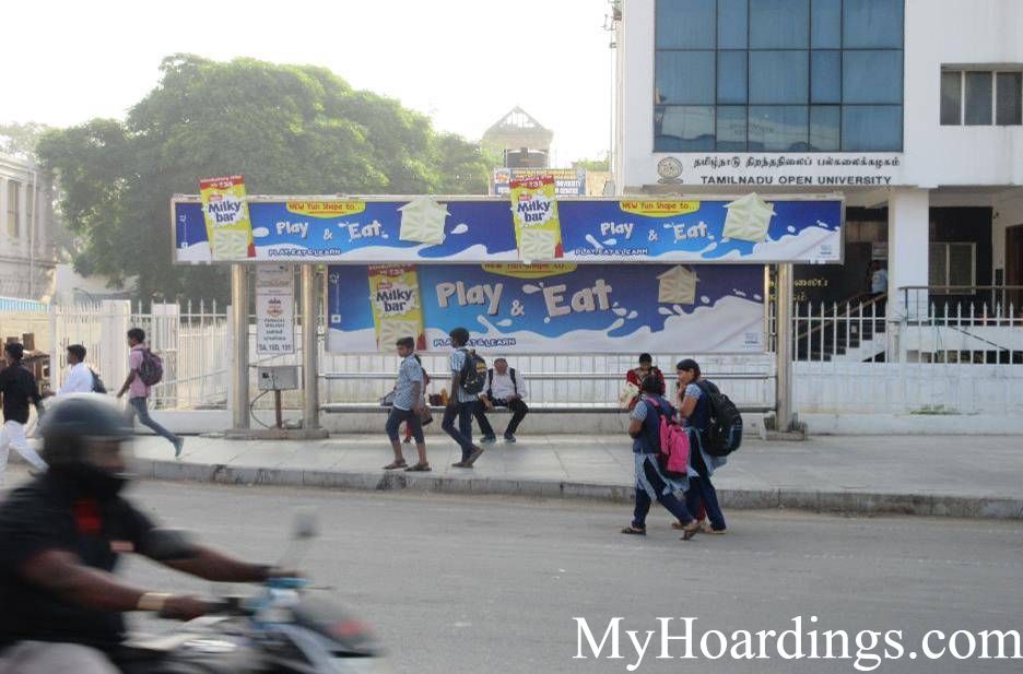 Advertising on Bus Shelter in Panagal Maligai Bus Stop in Chennai, Bus Shelter