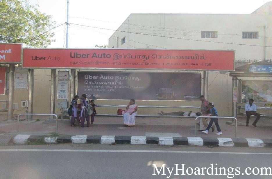 Advertising on Bus Shelter in Saidapet Court Bus Stop in Chennai, Bus Shelter