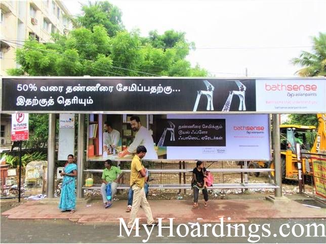 Advertising on Bus Shelter on Adyar Old Dept Bus Stop in Chennai, Bus Shelter