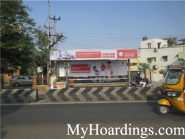 Advertising on Bus Shelter on Kaliyamman Koil Street, Natesan Nagar Bus Stop in Chennai, Bus Shelter