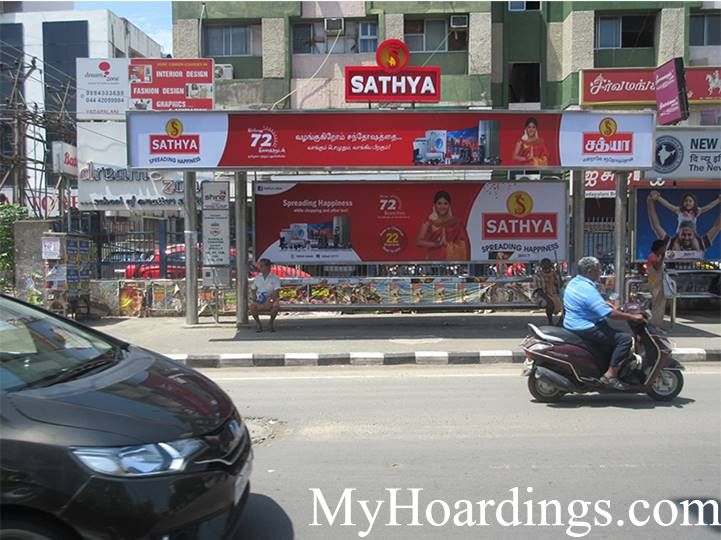 Advertising on Bus Shelter on Kamala Theater Bus Stop towards Porur in Chennai, Bus Shelter