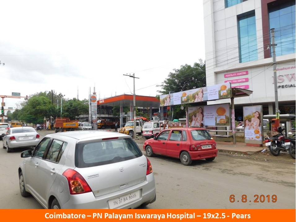Advertising on Bus Shelter on PN Palayam Iswarya Hospital Coimbatore, Bus Shelter
