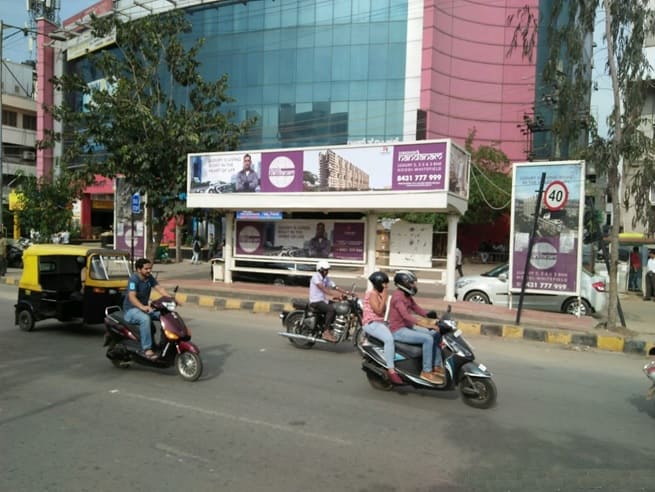 Total cost involved in Bus Shelter advertising rates comprise of Rental + Printing + Mounting + Taxes (Monitoring Extra). The prices mentioned above on portal are only rentals for the space. Bus stop OOH advertising rentals in Bangalore and Karnataka and are subject to changes depending on various factors. We encourage you to contact MyHoardings at +91 995384-7639 or drop us an email at business [at] myhoardings.com to confirm final rates.