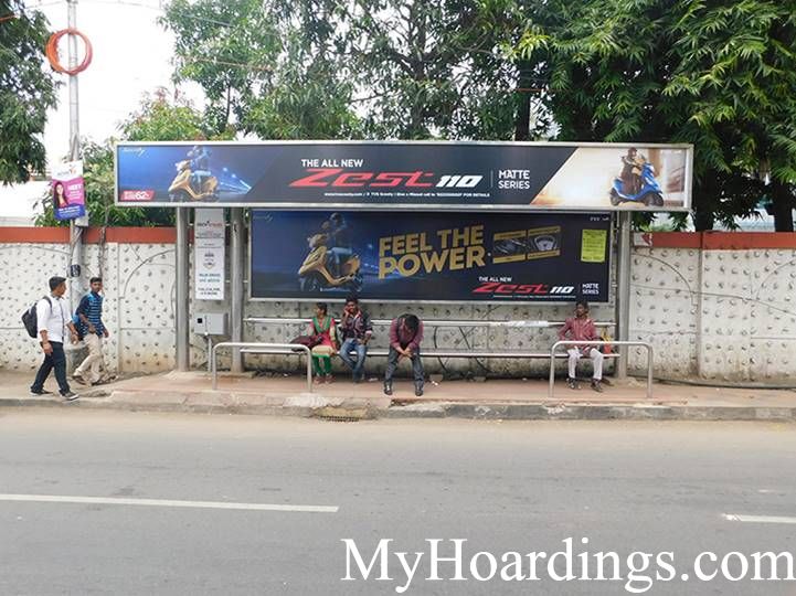 Advertising on Bus Stop in Palm Grove Hotel Bus Stop in Chennai, Bus Shelter