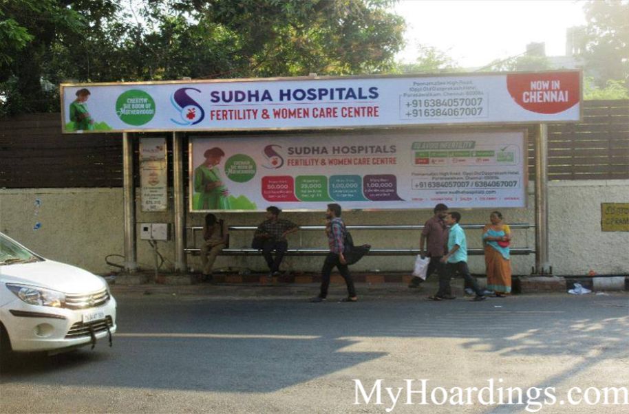 Advertising on Bus Stop in Ramaswamy Road Bus Stop in Chennai, Bus Shelter
