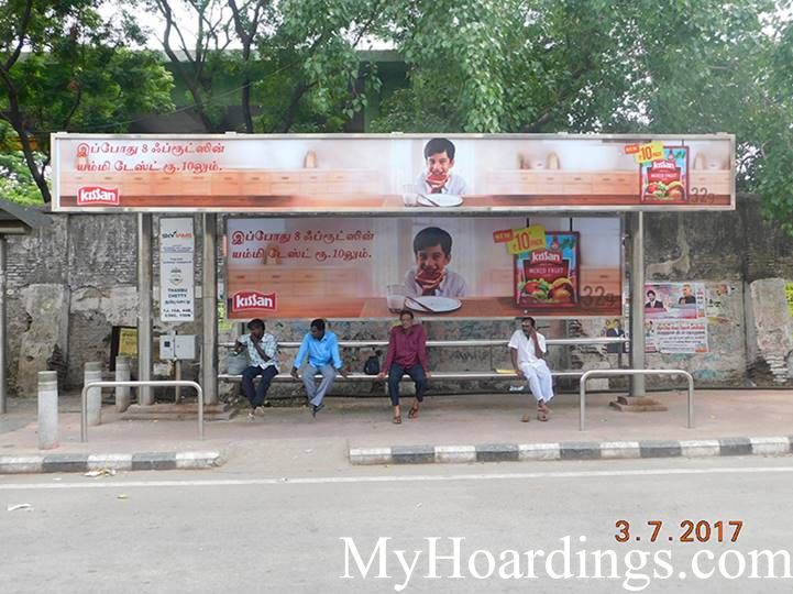 Advertising on Bus Stop in Thambu Chetty street Bus stop towards Royapuram in Chennai, Bus Shelter