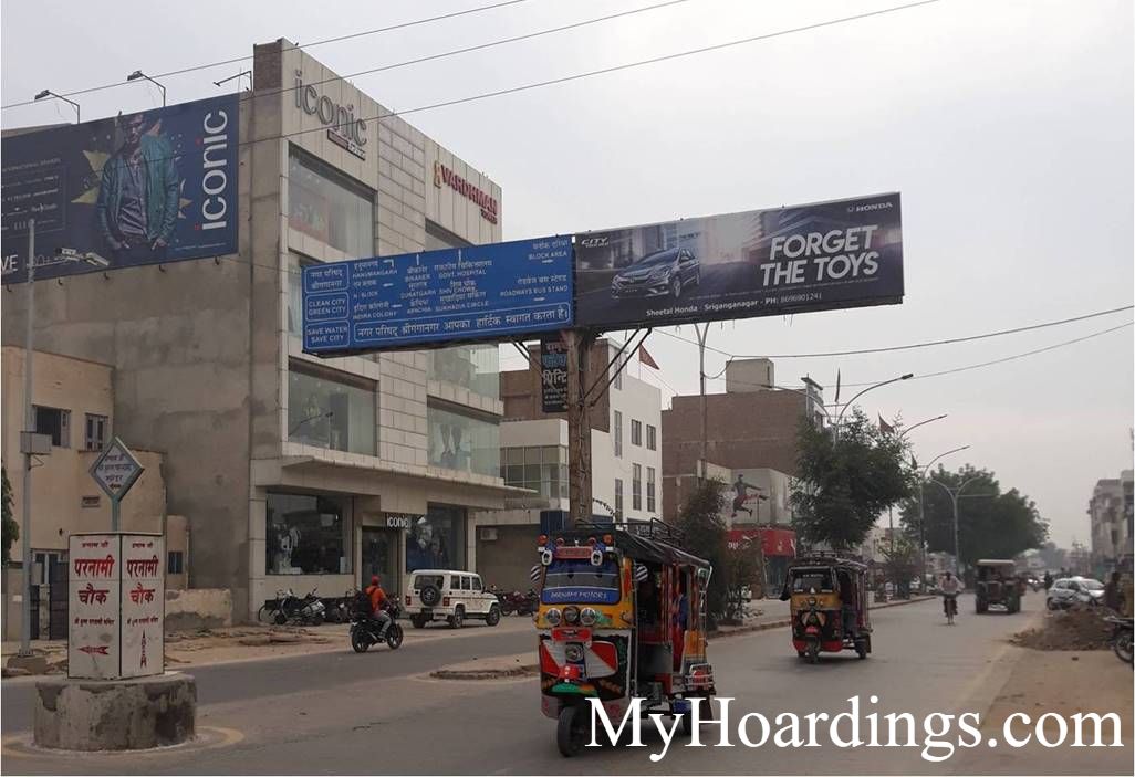 Prices of hoardings in Sri-Ganganagar are decided by location,size,lit/non-lit, number of footfalls in vicinity or the traffic etc.
