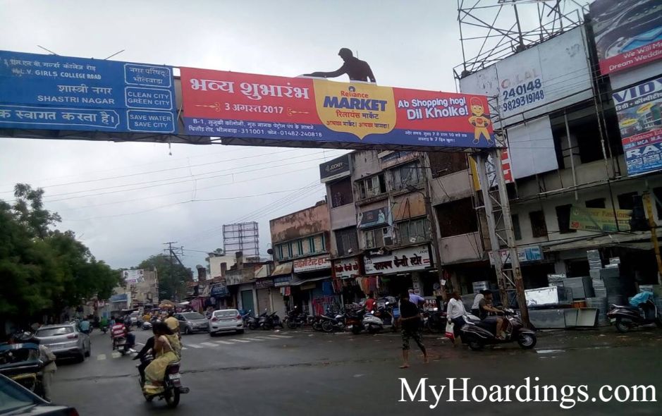 Advertising on Gantry at Balaji Market To Suchan Kendra Chauraha in Bhilwara, Gantry