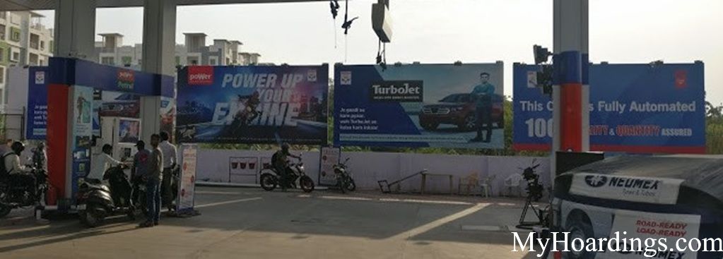 Fuel / Petrol pump Hoardings are big size display boards which you often see on the petrol pumps while awaiting your turn for fuel refill. Advertisement display on petrol pump provide opportunity for brands to increase their visibility among two and four wheeler owners.