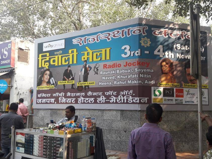 Ad printed on Flex/Cloth Banner will be mounted on the complete area of the Hoardings.