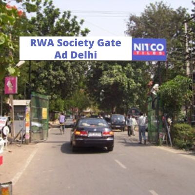 RWA Society gate advertising consist of placing client advertisement on rectangular display board usually installed at the entrance of residential societies within Delhi.
