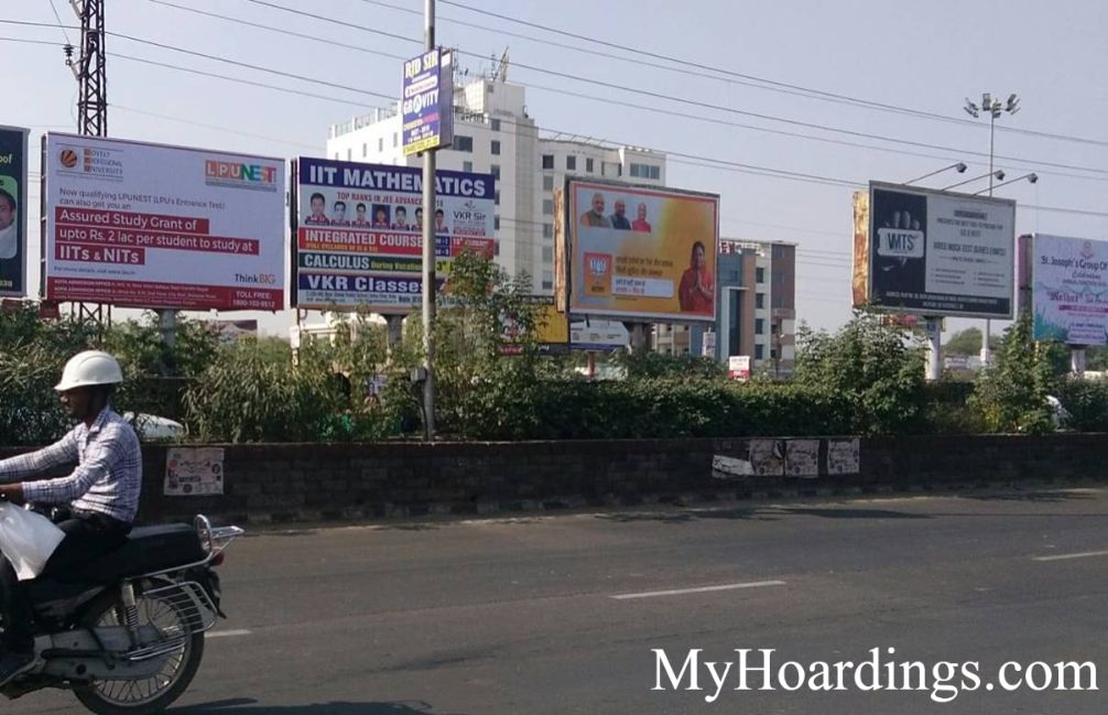 Prices of hoardings in Kota are decided by location,size,lit/non-lit, number of footfalls in vicinity or the traffic etc.