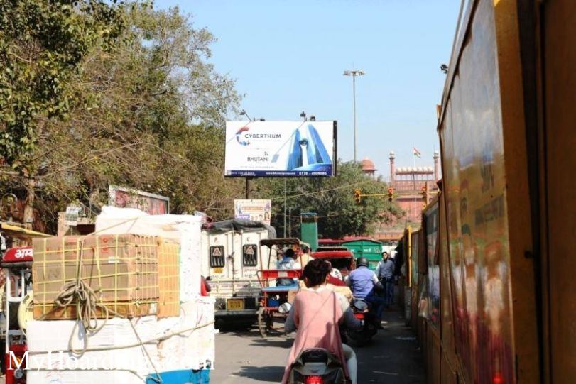 Advertising on Unipole Opposite Digamber Jain Mandir towards Lal Quila in New Delhi, Unipole