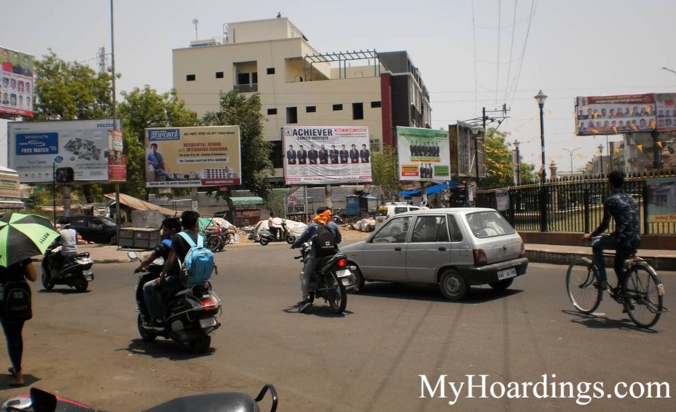 Prices of hoardings in Kota are decided by location,size,lit/non-lit, number of footfalls in vicinity or the traffic etc.