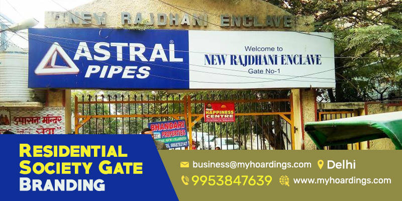 RWA society gate branding in INDIA consist of display advertisement on the rectangular board mounted on RWA entrance gates and provides highly targeted mode of visibility for a particular area. On the other hand, outdoor Hoarding and billboards are usually installed on the sideways of big roads inside city and highways and get attention from commuters.