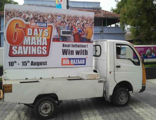 The most widely display vehicle used for advertising in Faridabad are Tata Ace and other mobile van/trucks of varying sizes.